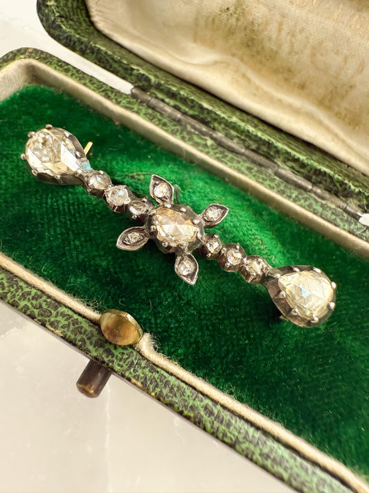 Antique Rose Cut Diamond Brooch in Silver & 18K Gold | Georgian to Early Victorian Era | Convertible Chain Extender or Pendant
