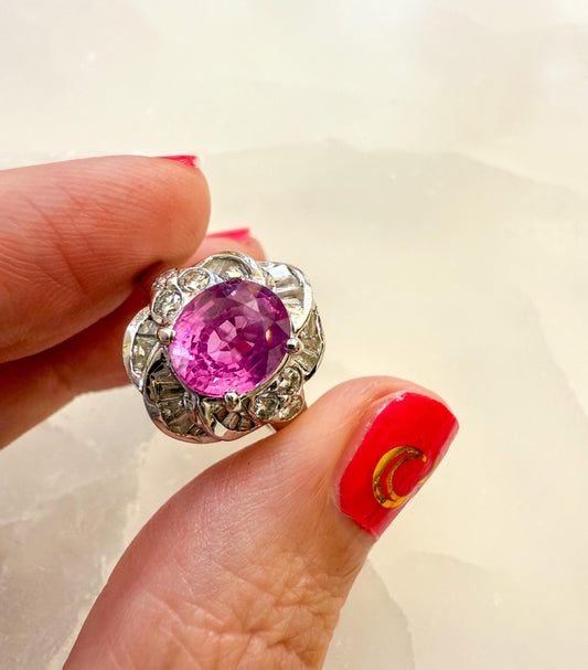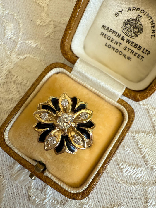 Victorian 14K Gold Diamond & Enamel Ring Old Mine Cuts Unique Antique Statement Ring