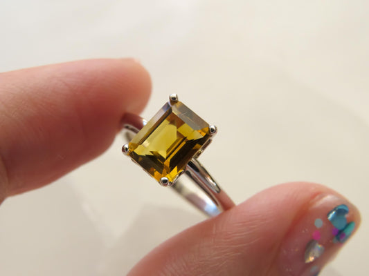Emerald-Cut Citrine Ring in 14K White Gold 1.5 Carats, Size 6 Warm Golden Gem