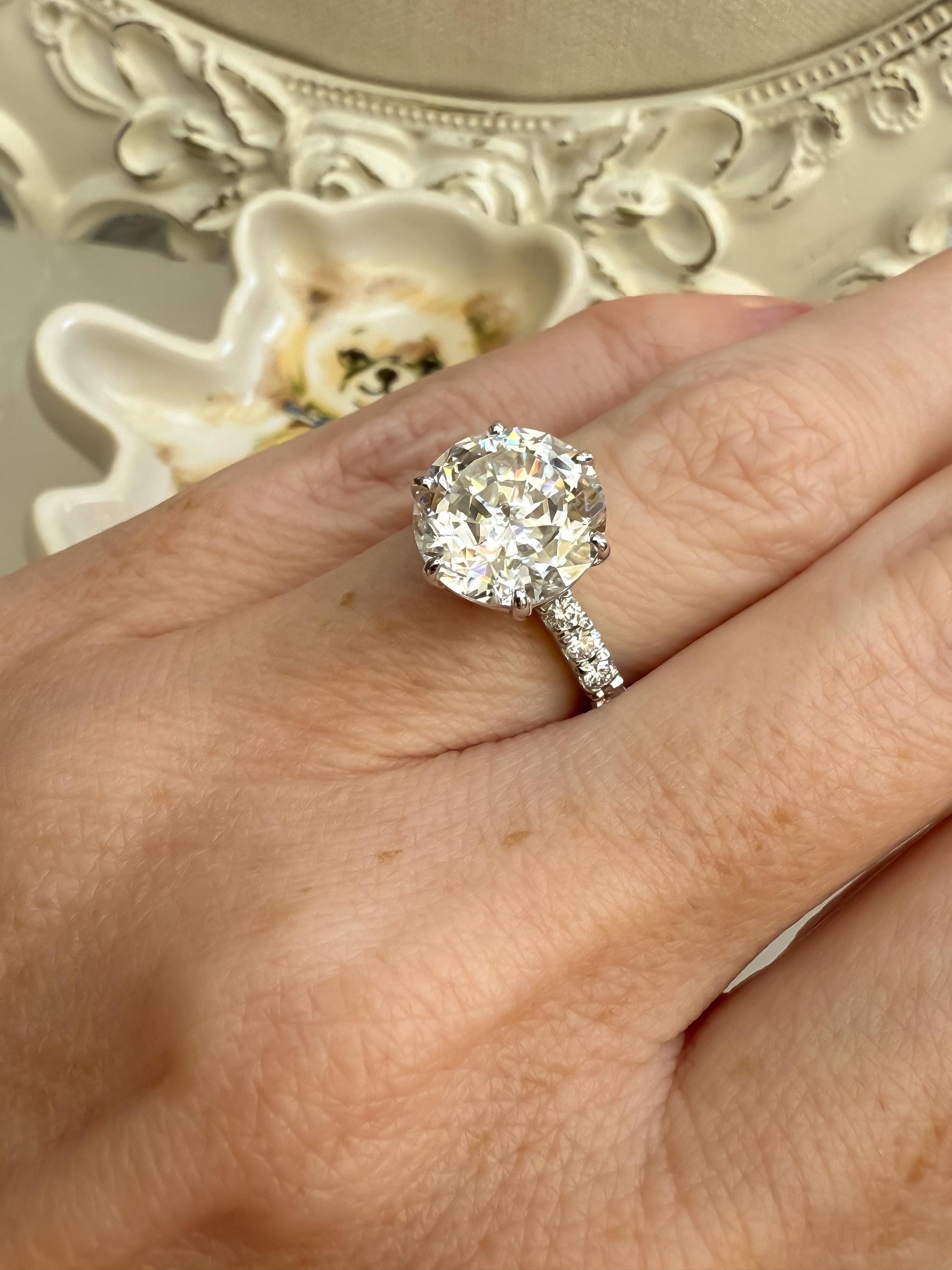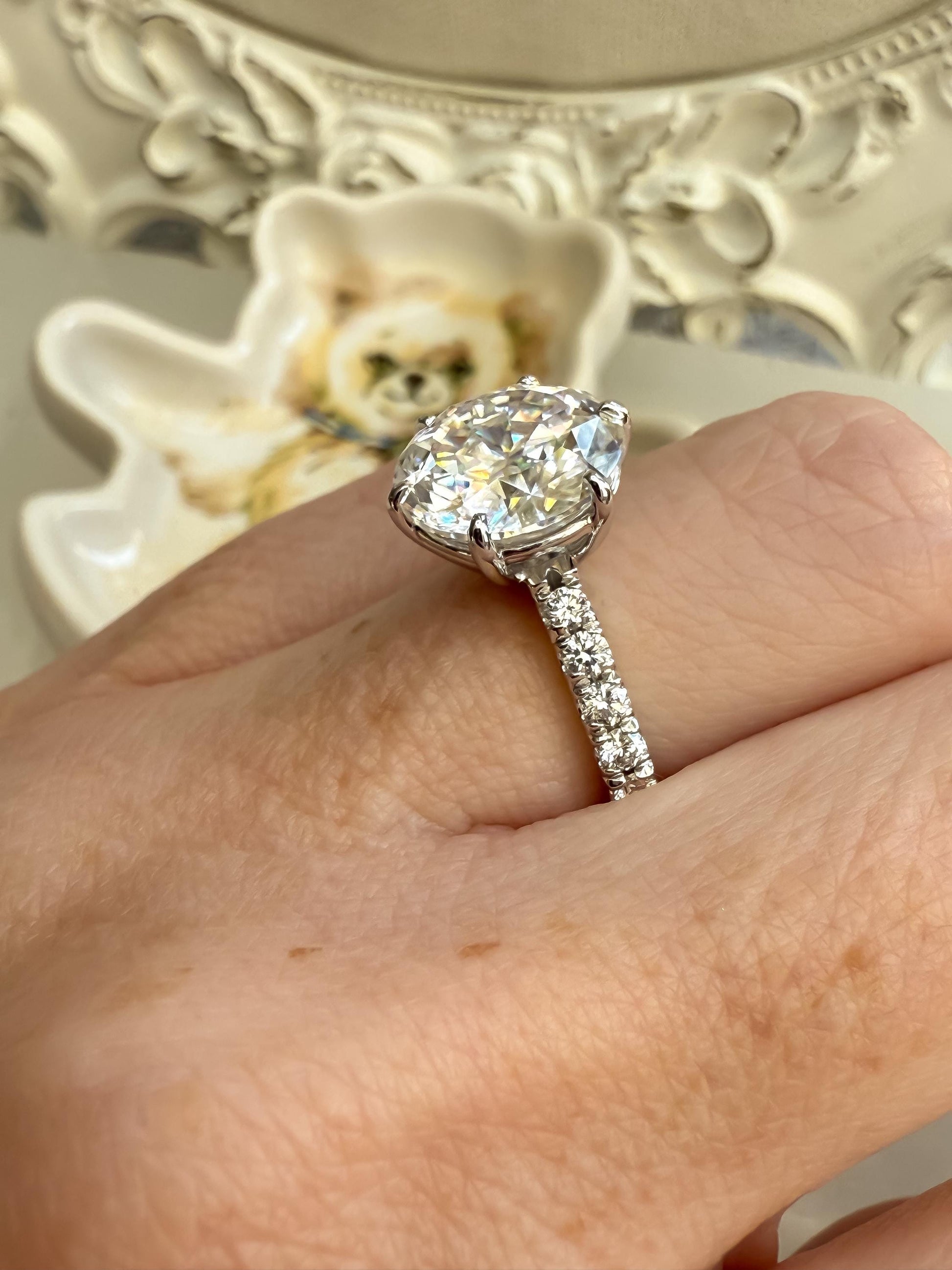 Meet your new everyday showstopper. This brilliantly crafted ring features a 3.5 carat Crown of Light–style moissanite center, paired with an additional .50 carats of sparkling moissanite along the shoulders.