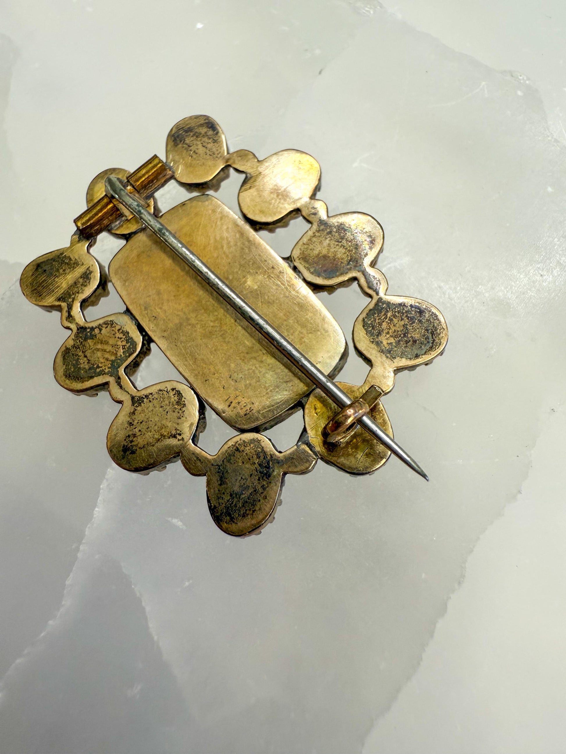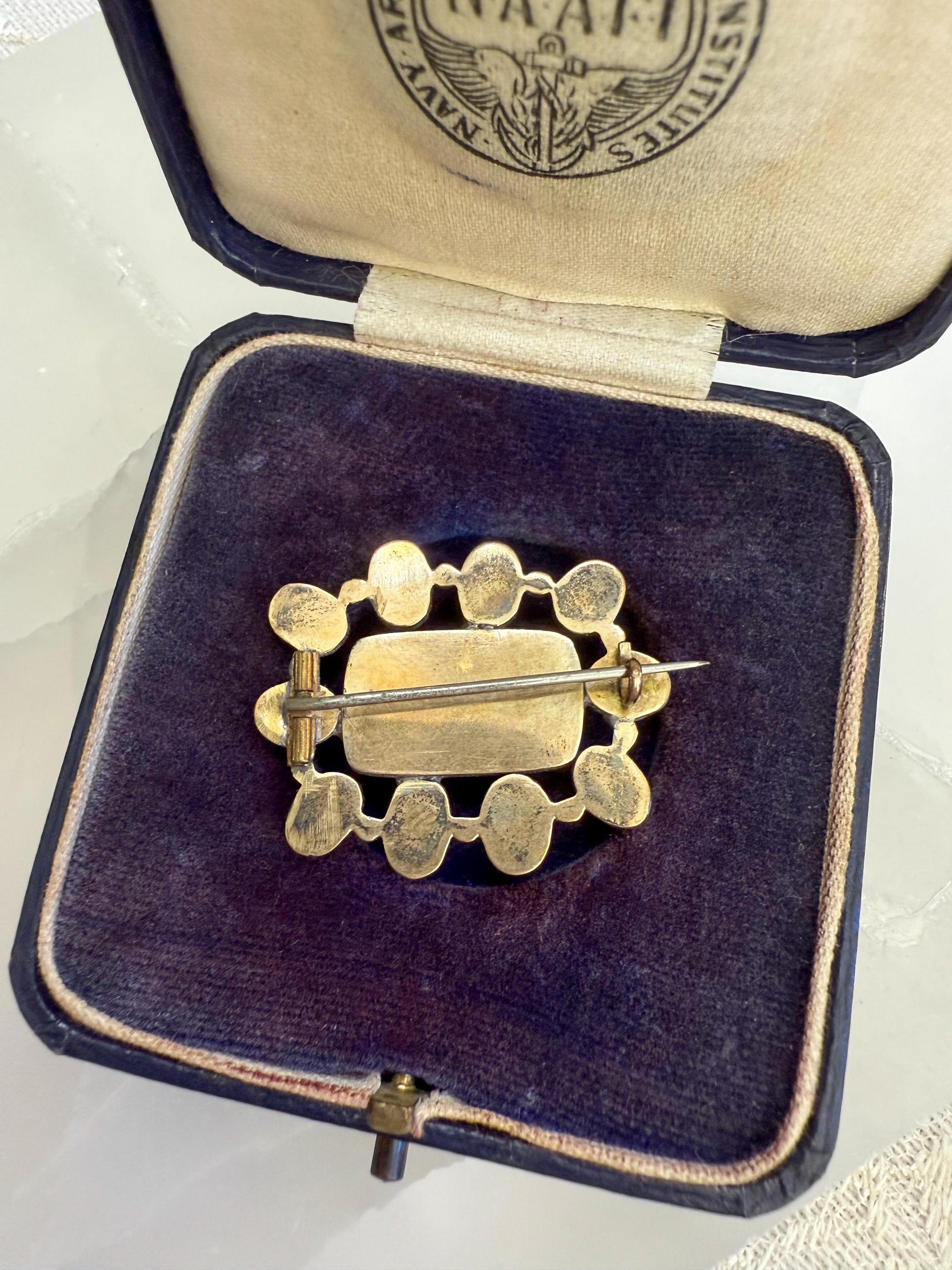 The brooch is crafted in 9K gold with a base-metal pin, as was common for the period. Both romantic and poignant, it’s not only a piece of jewelry but also a piece of personal history, making it a fascinating addition to any collection of antique or Georgian-era jewels.