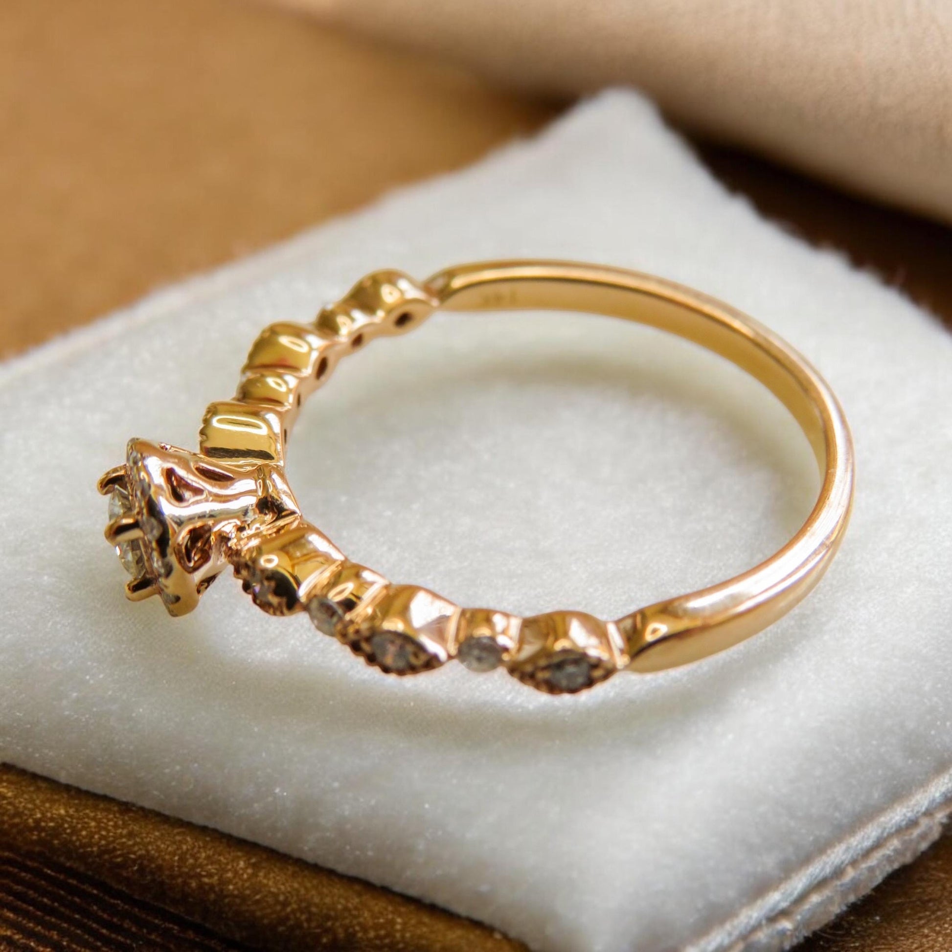 Delicate and luminous, this 14K rose gold diamond ring is a treasure of timeless beauty.