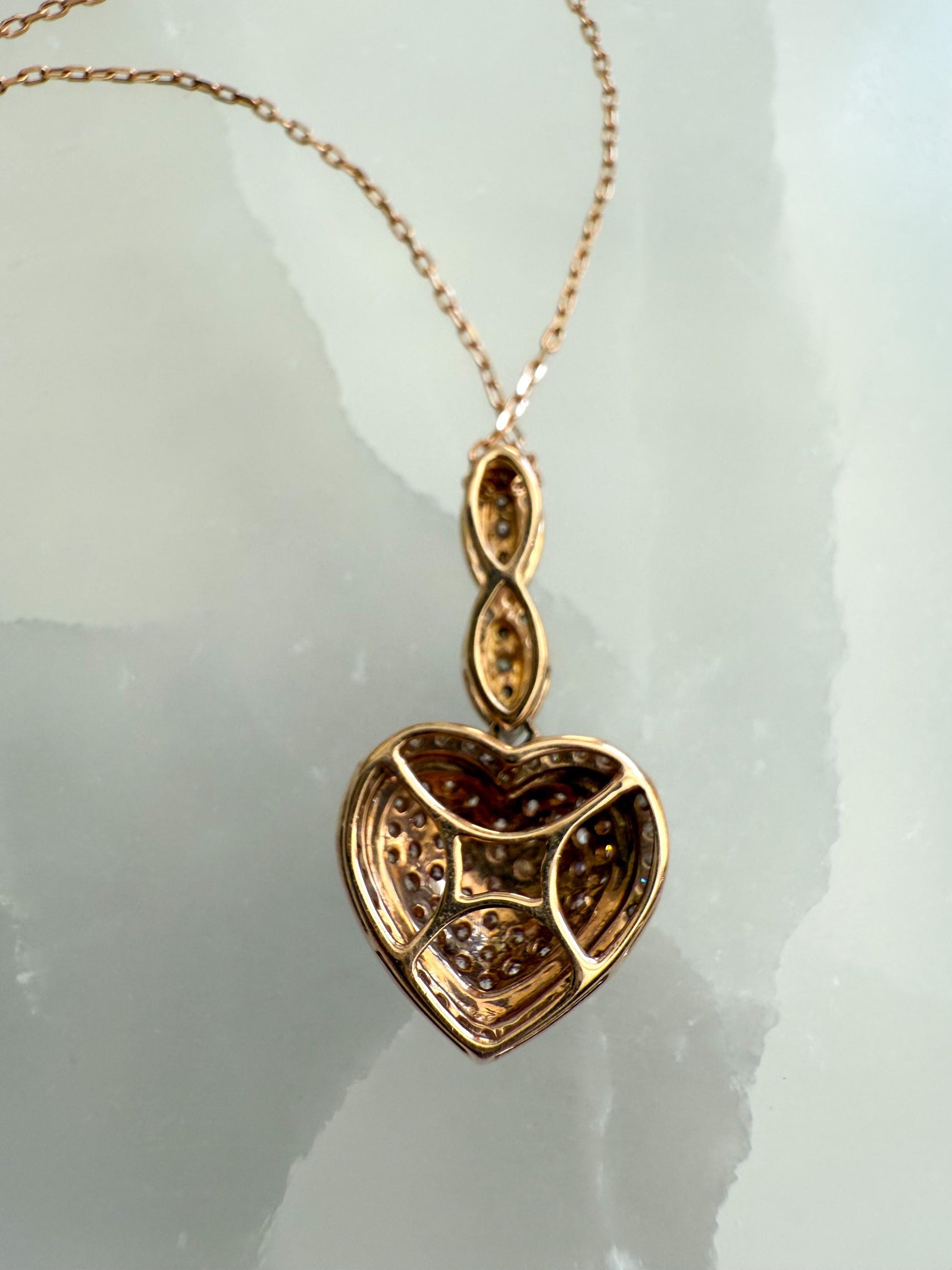 14K Rose Gold Heart Necklace with Natural Pink & White Diamond Pendant