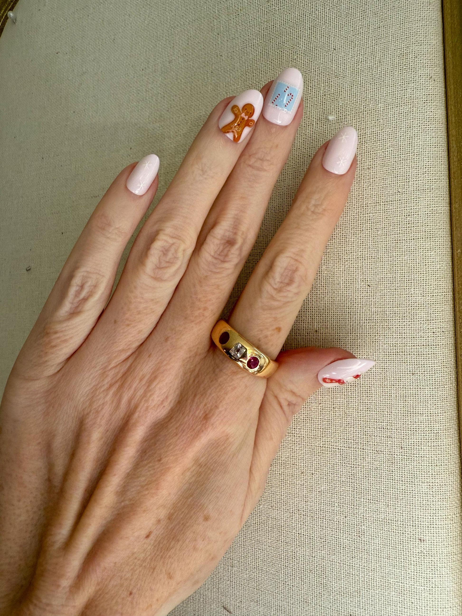 This antique flush-set trilogy ring is everything we love about Victorian-era craftsmanship: weighty gold, soulful stones, and a design that feels effortlessly stylish today.