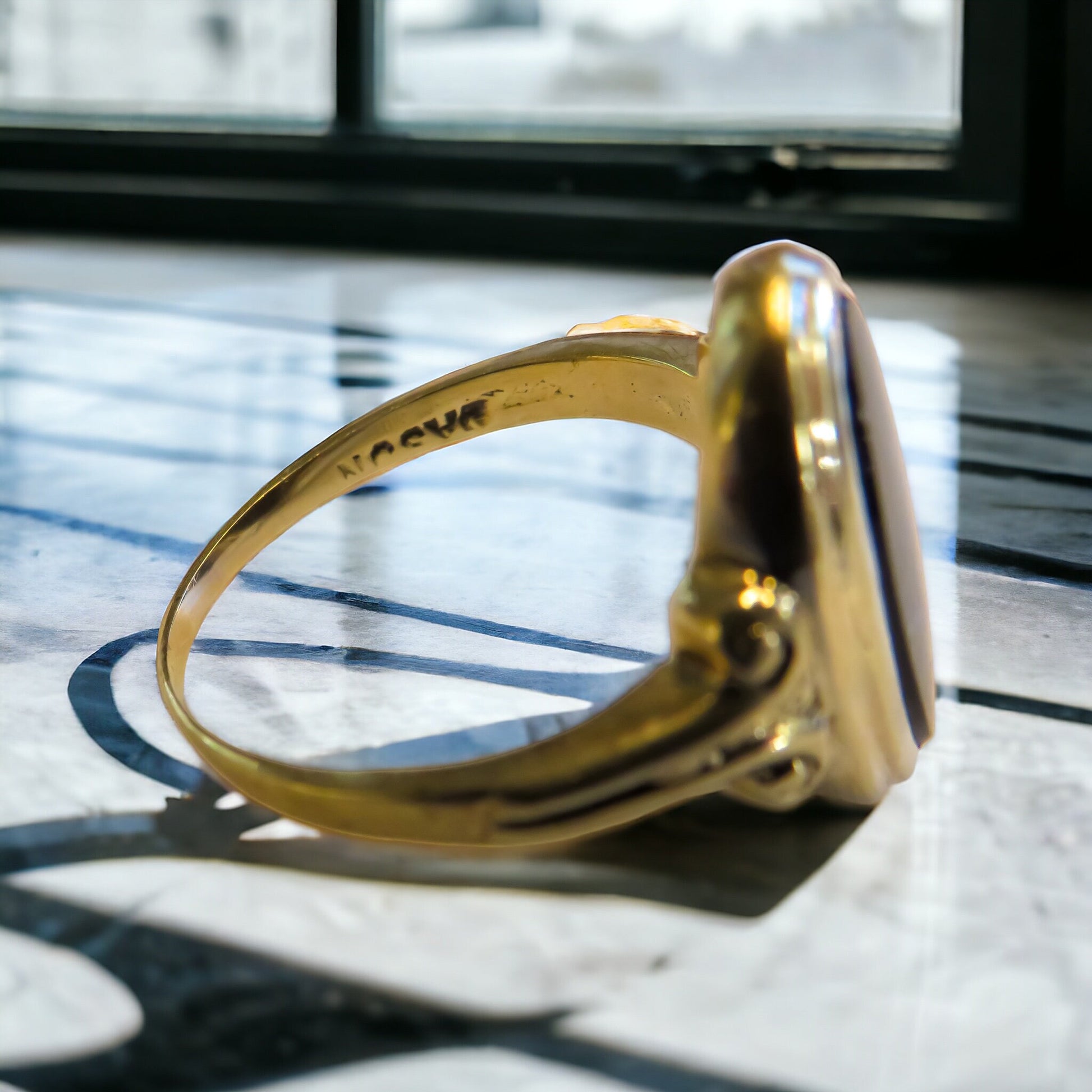 Introducing our exquisite antique onyx ring, meticulously crafted in 10K yellow gold.