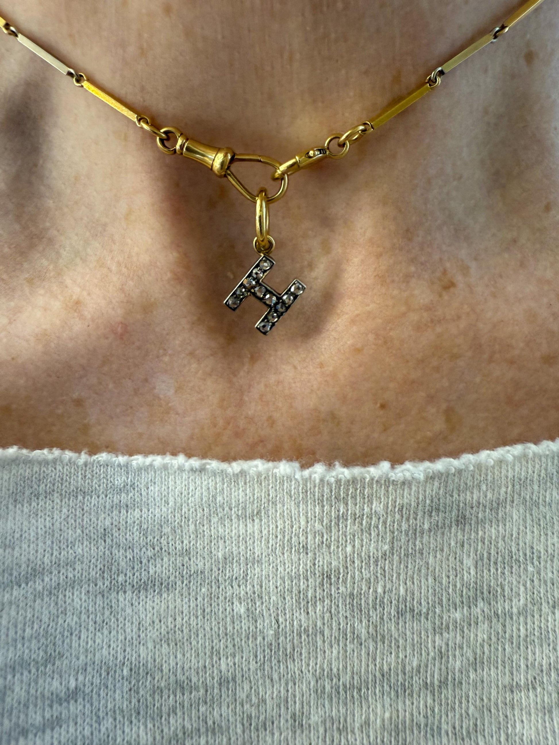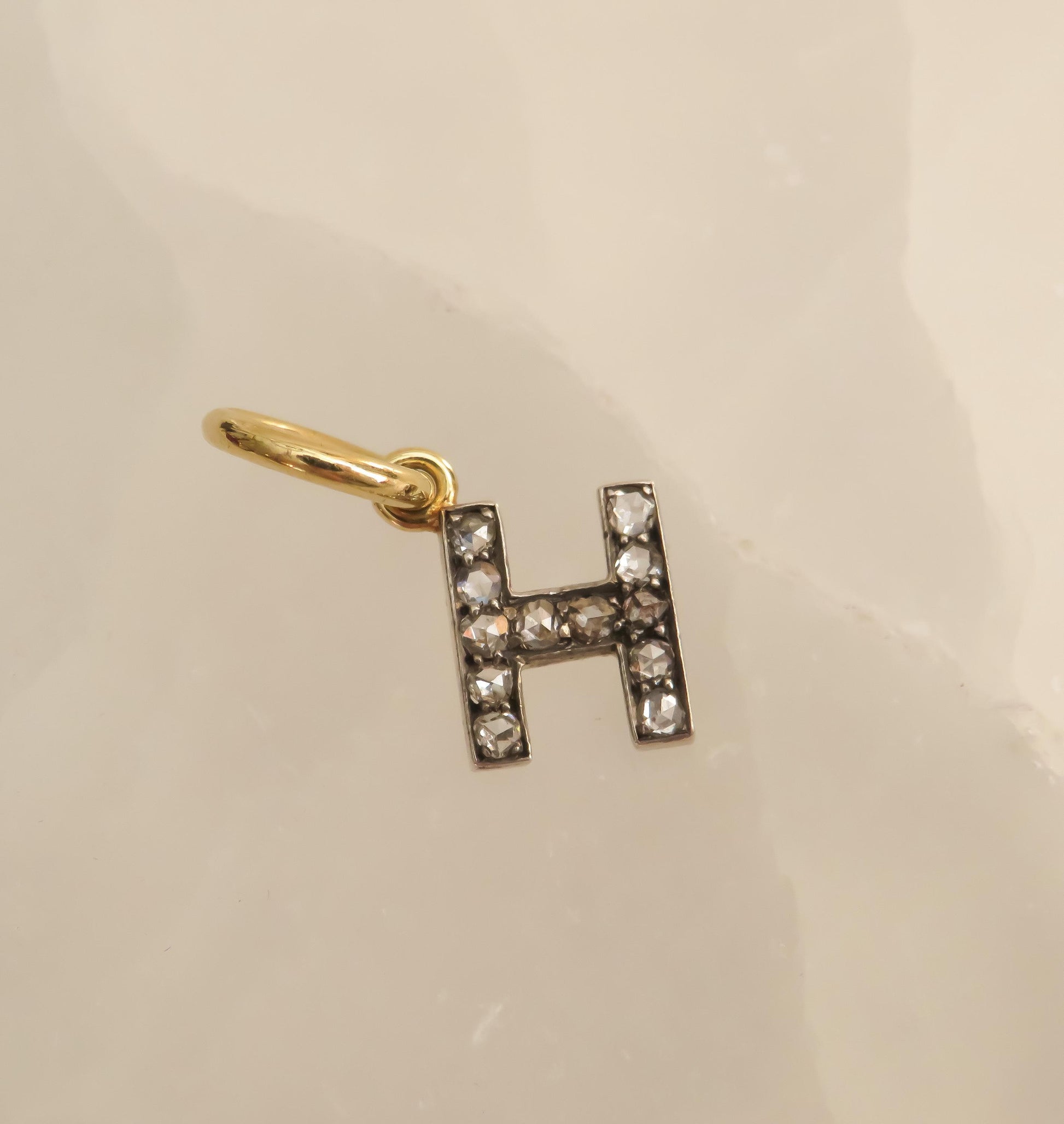 • Letter H set with rose-cut diamonds