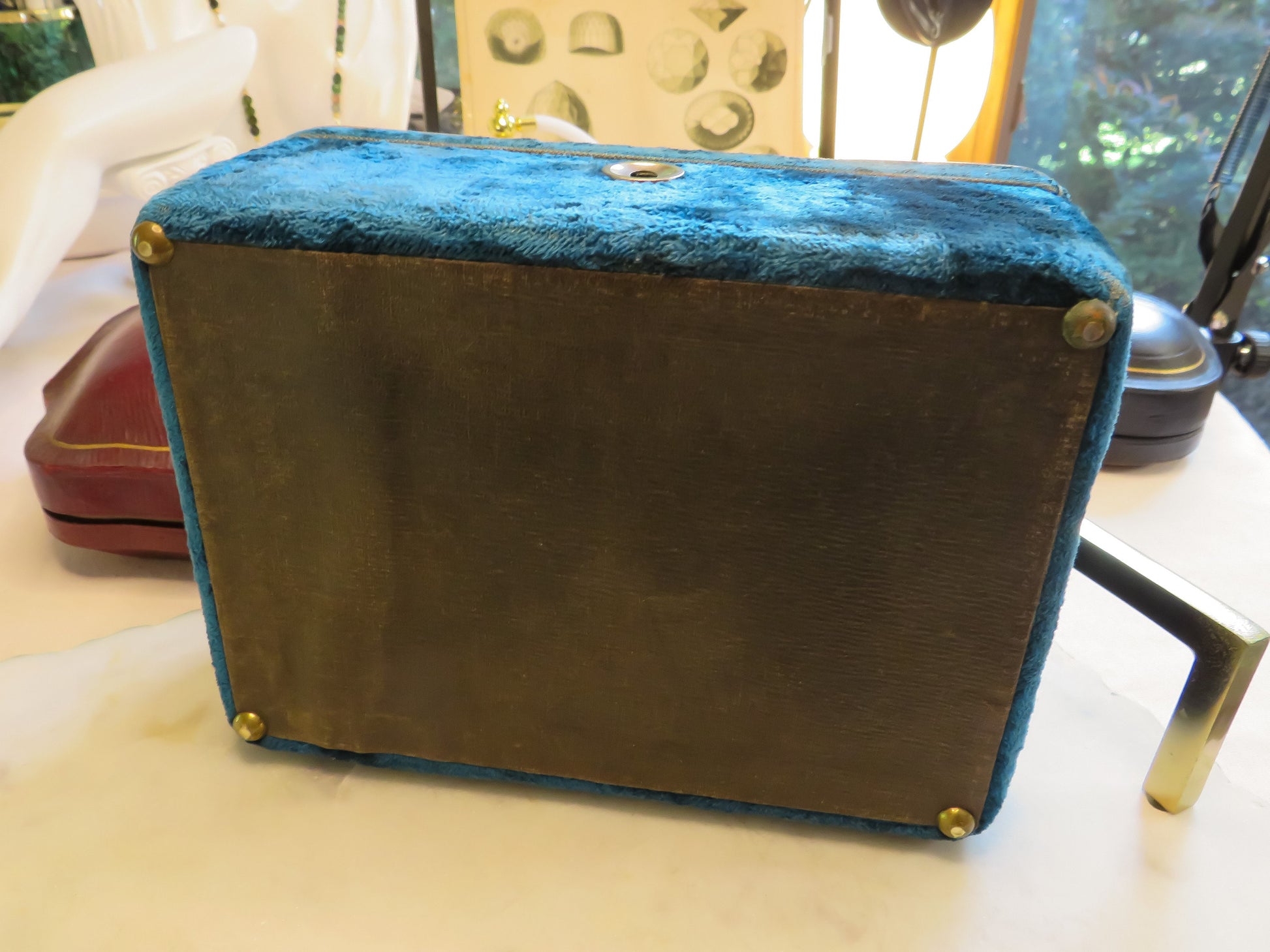 Antique Victorian Velvet Jewelry Box in Rich Teal Blue