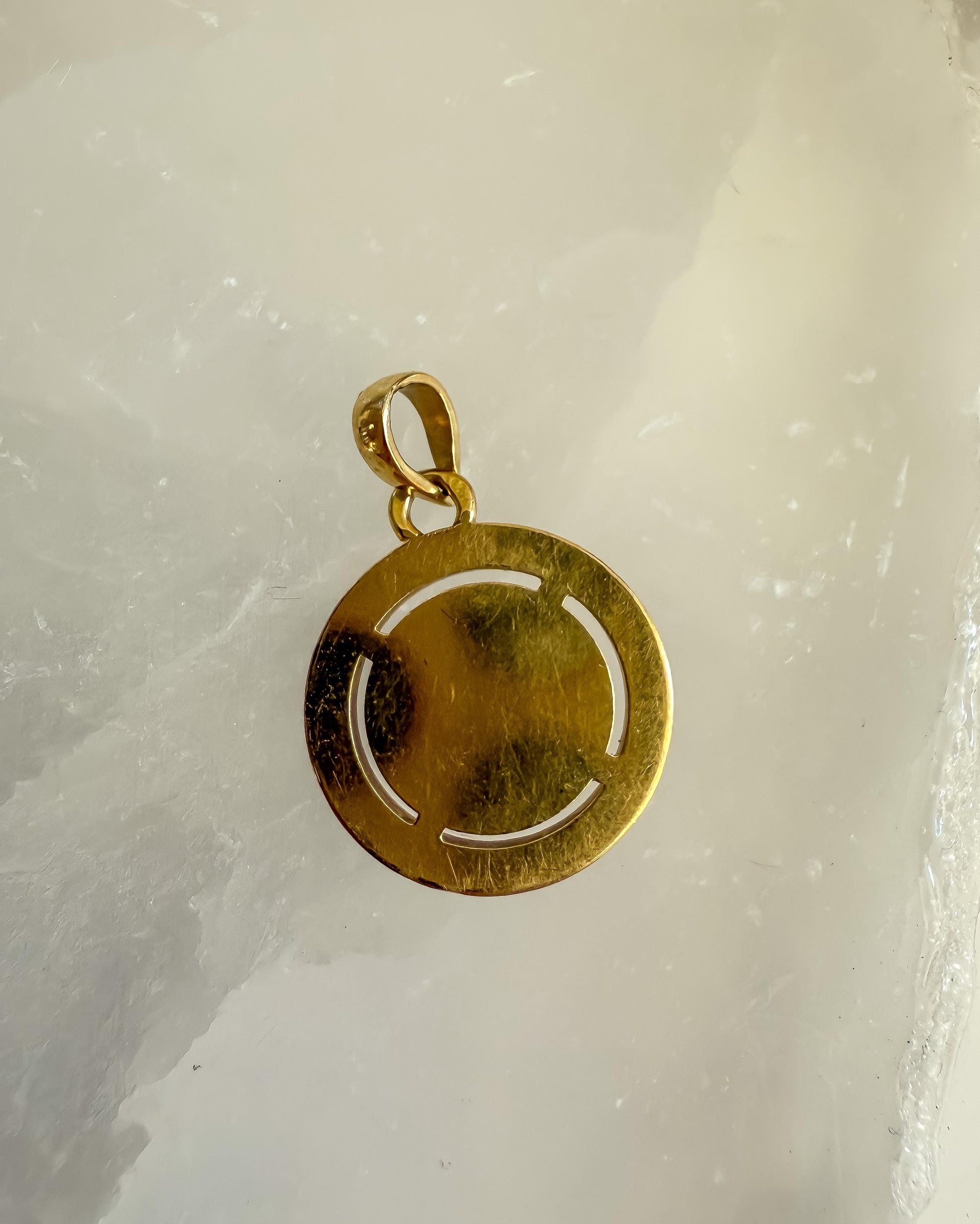 A beautiful piece of sentimental French history, this Augis love medal is crafted in 18K yellow gold and set with one natural diamond and synthetic rubies. Measuring 16mm, it’s the perfect size to wear alone or layered with other cherished pendants.