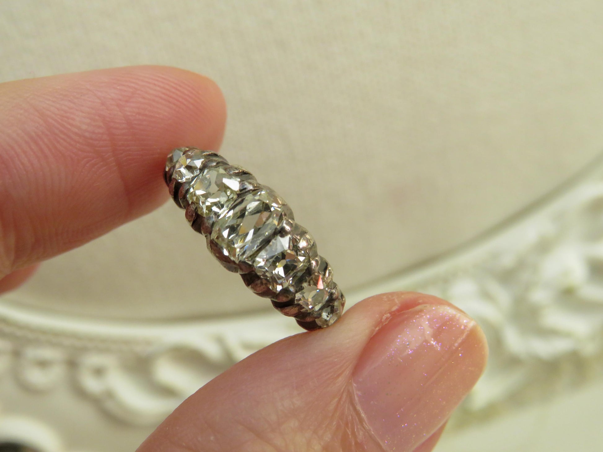 This ring is truly unique—both in its craftsmanship and in the rare variety of antique diamond cuts showcased across the band. It would make a remarkable addition to any fine antique jewelry collection.