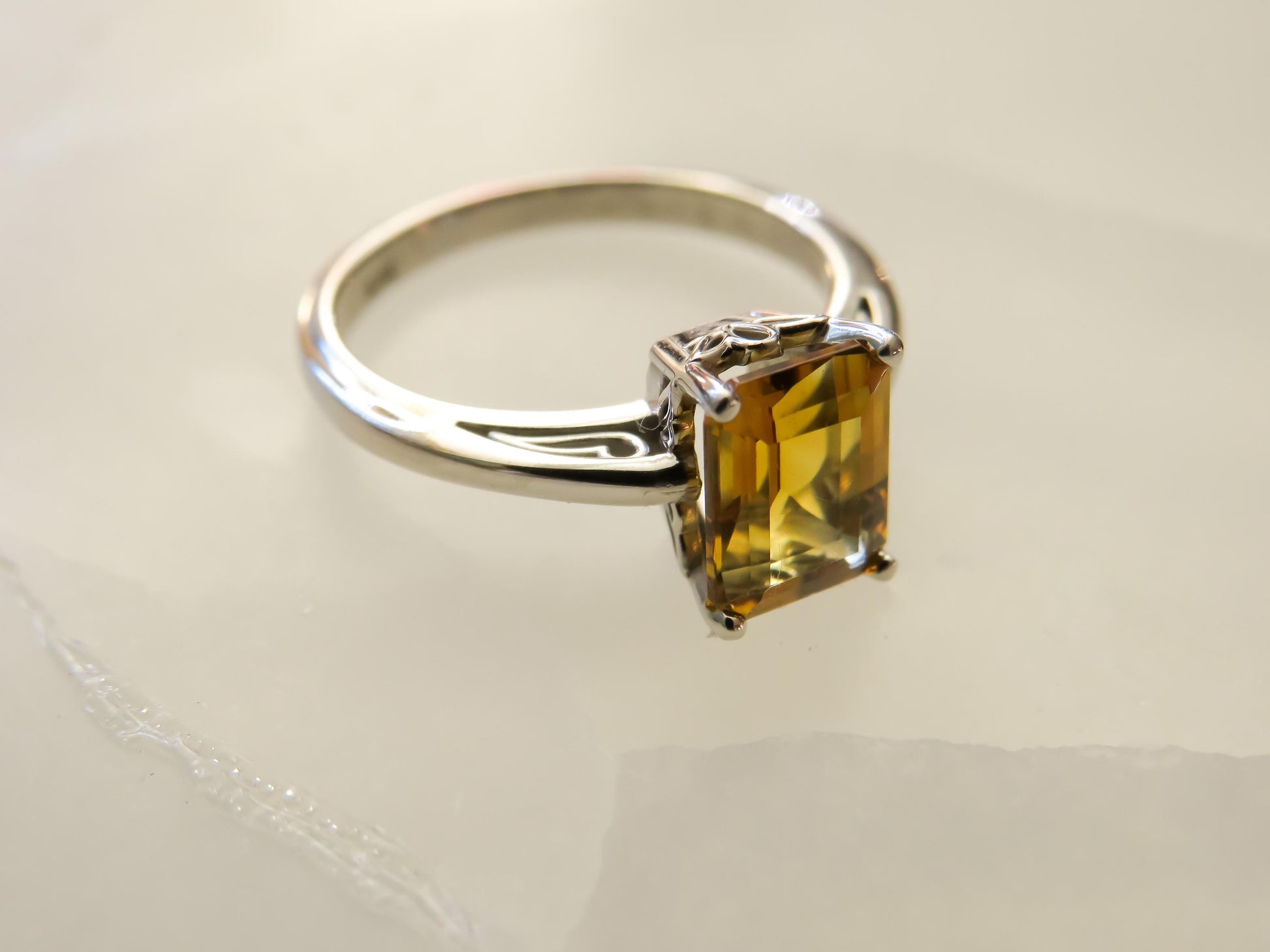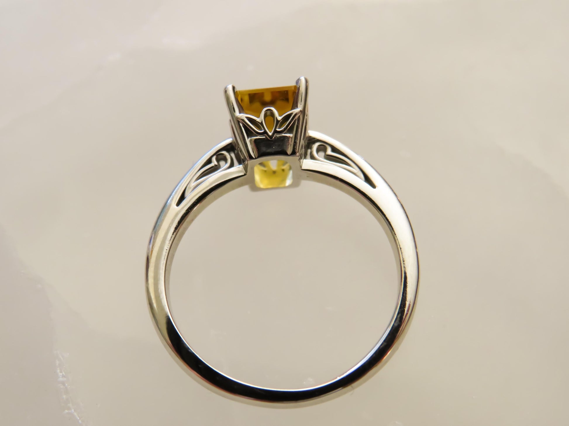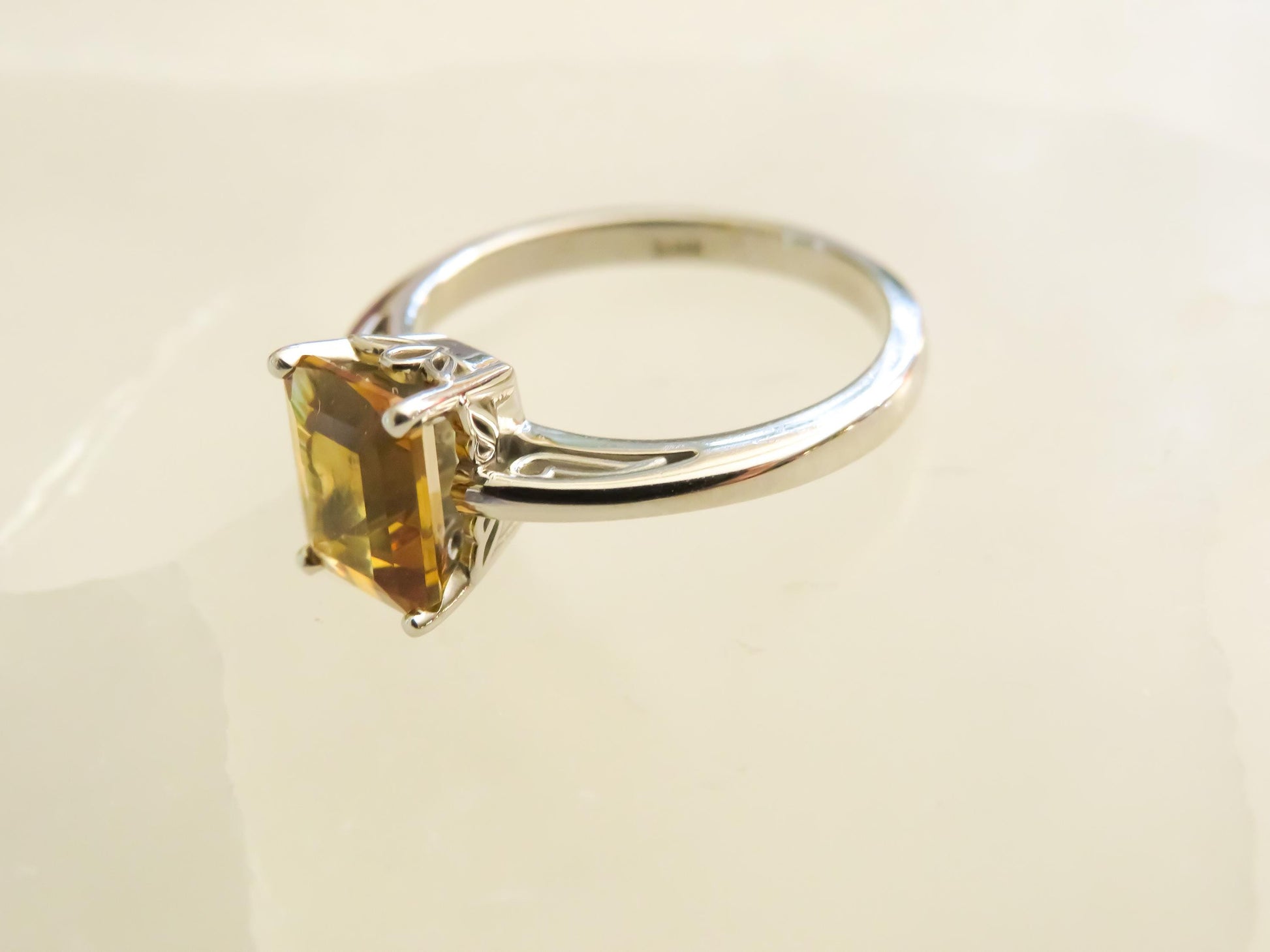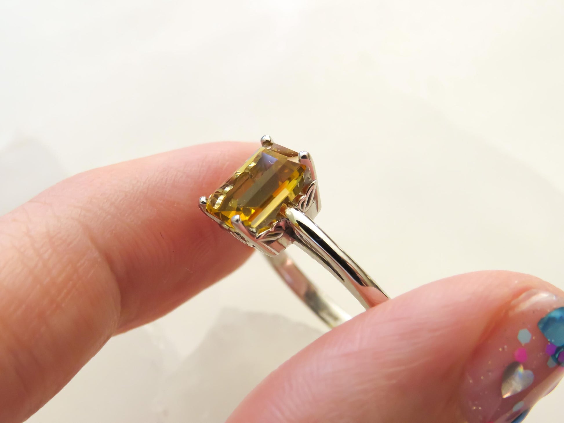 14K White Gold Emerald-Cut Citrine Ring – 1.5 Carats, Size 6 – Elegant Swirl Gallery Details