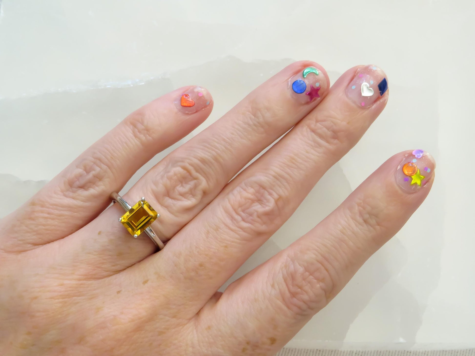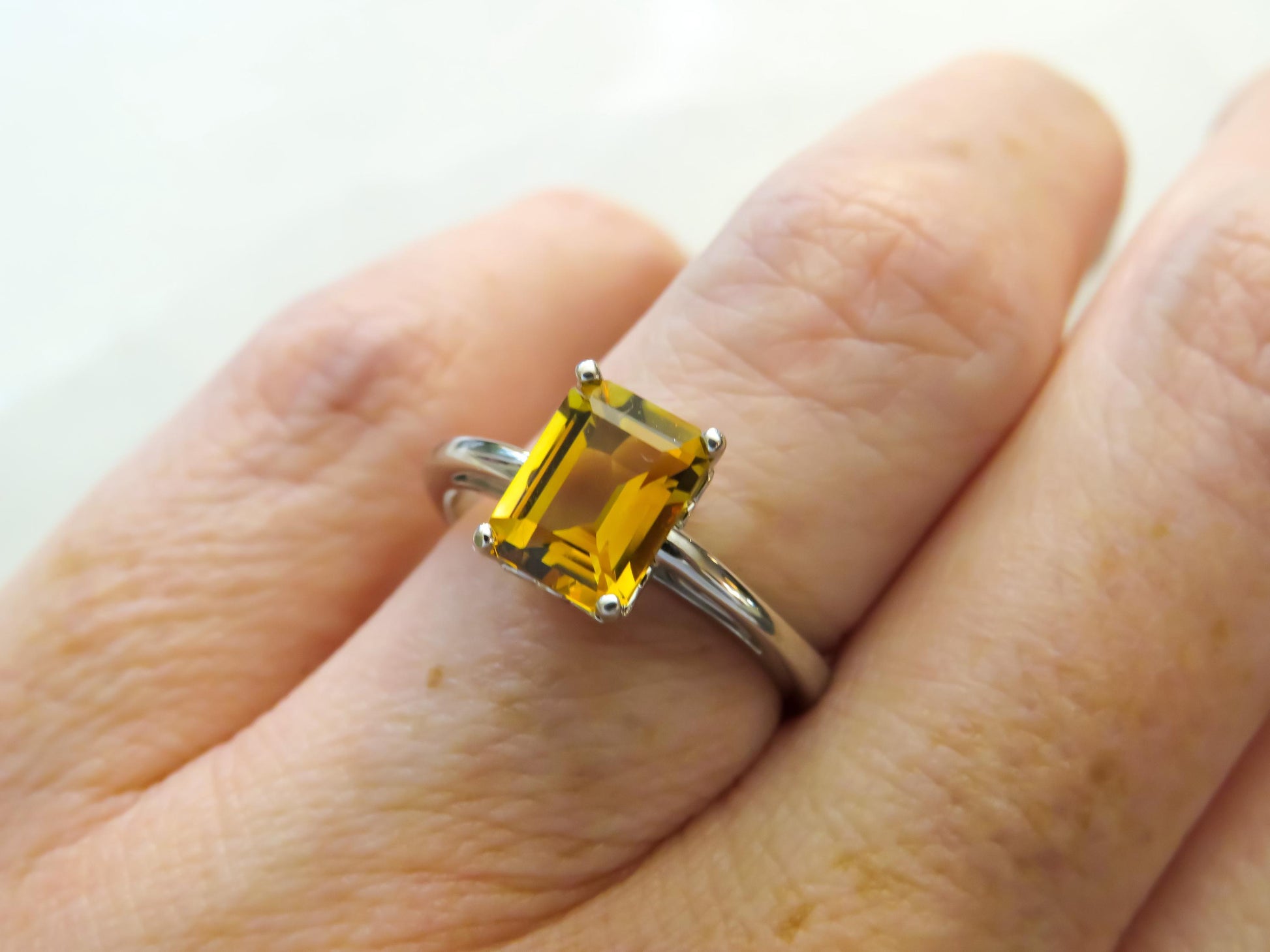 Emerald-Cut Citrine Ring in 14K White Gold 1.5 Carats, Size 6 Warm Golden Gem
