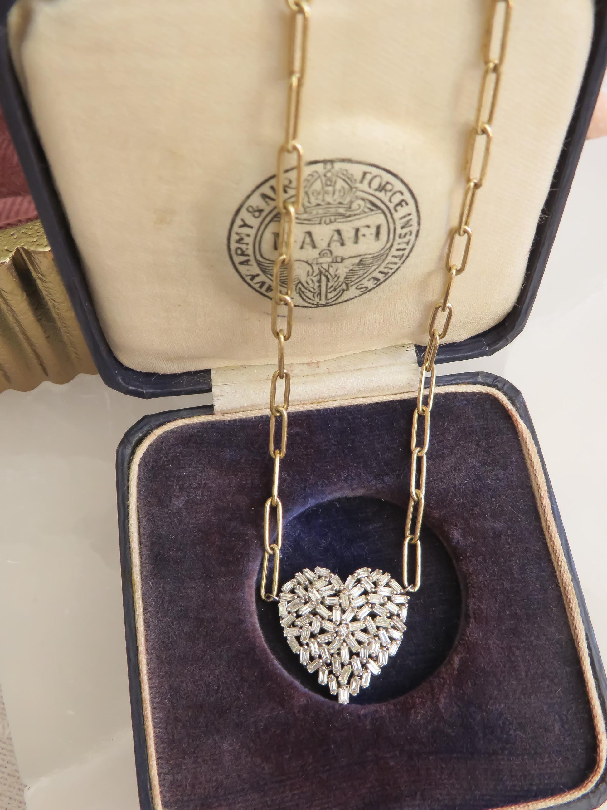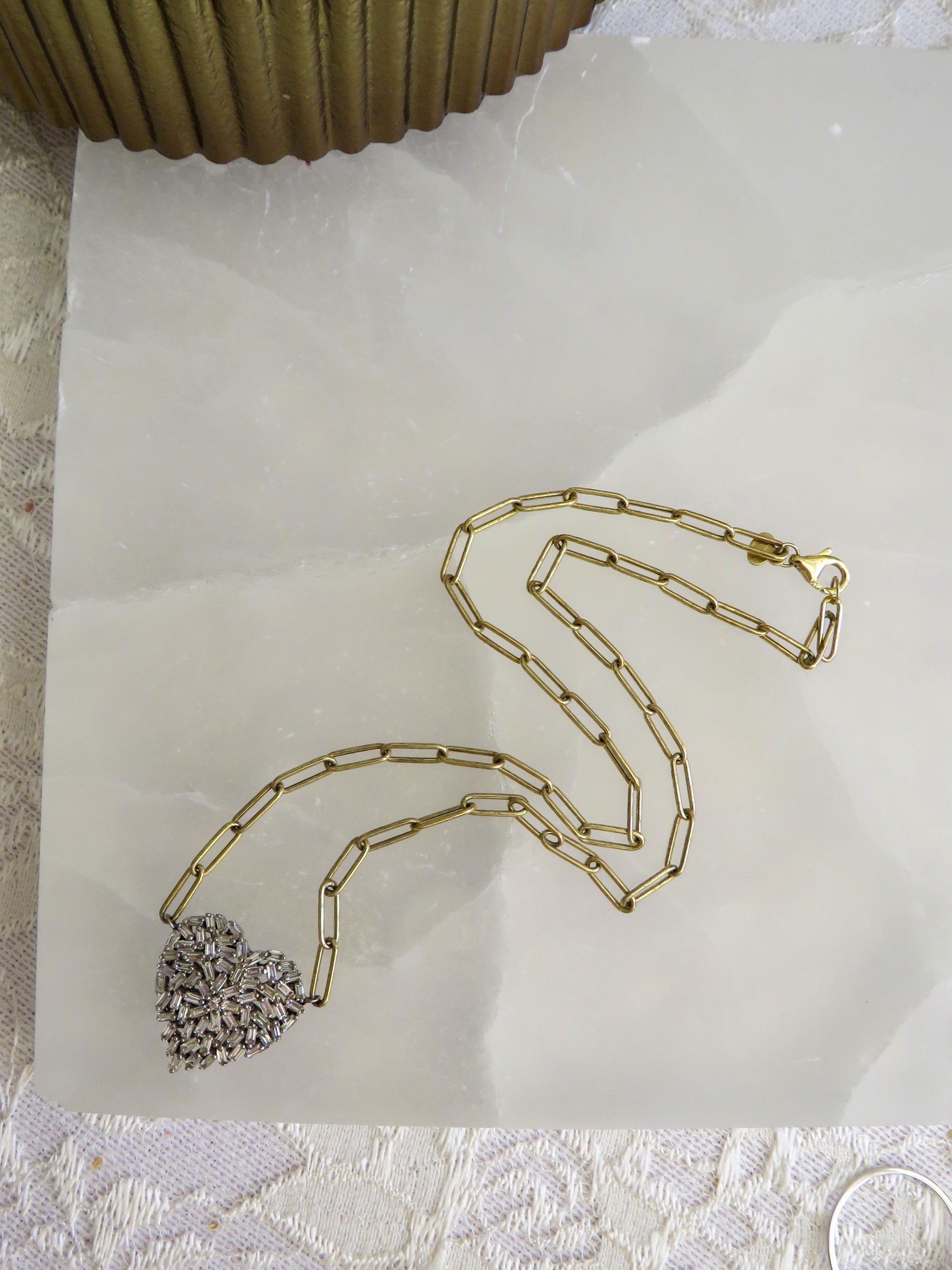 Natural Baguette Diamond Heart Necklace – 14K Gold