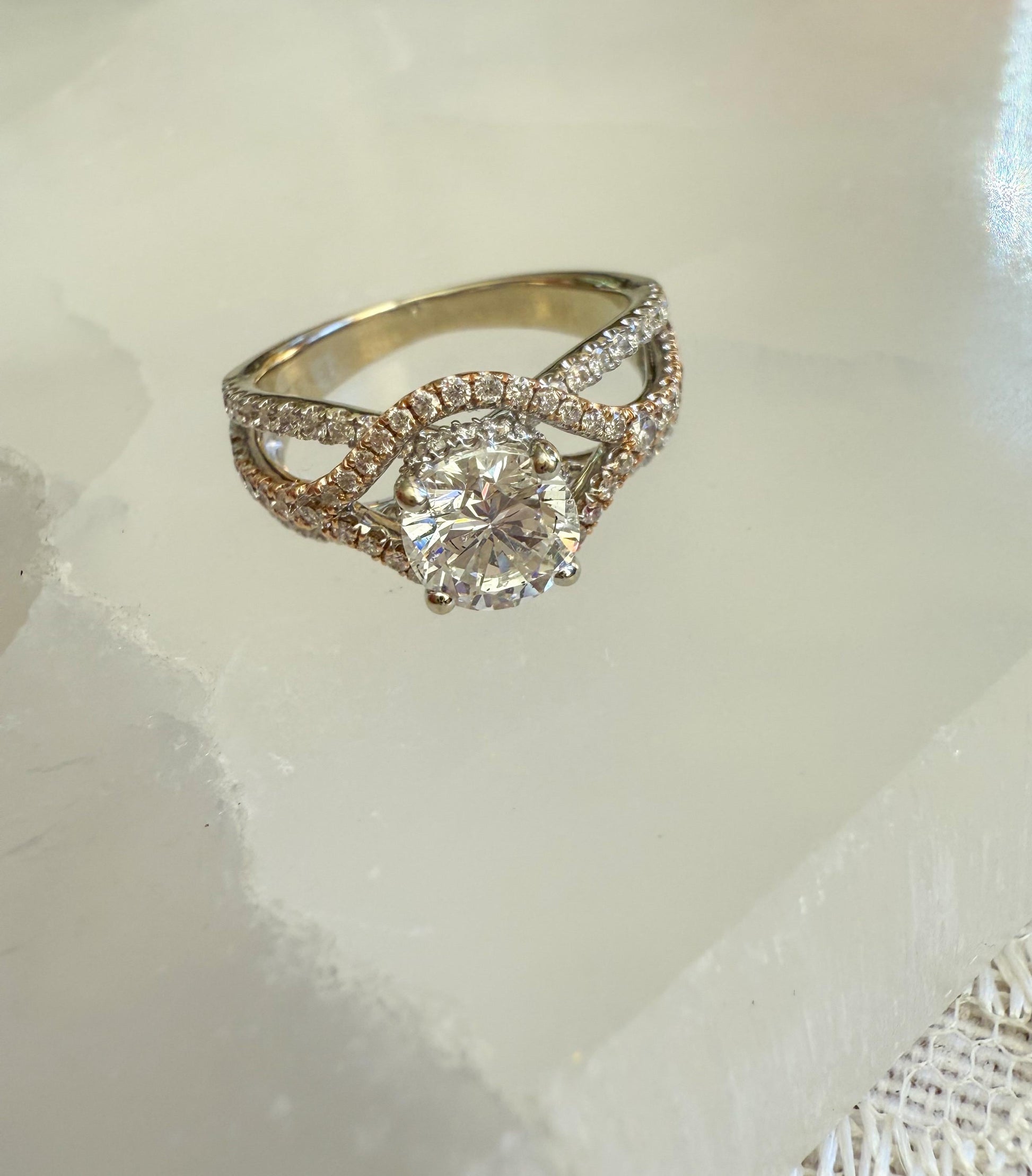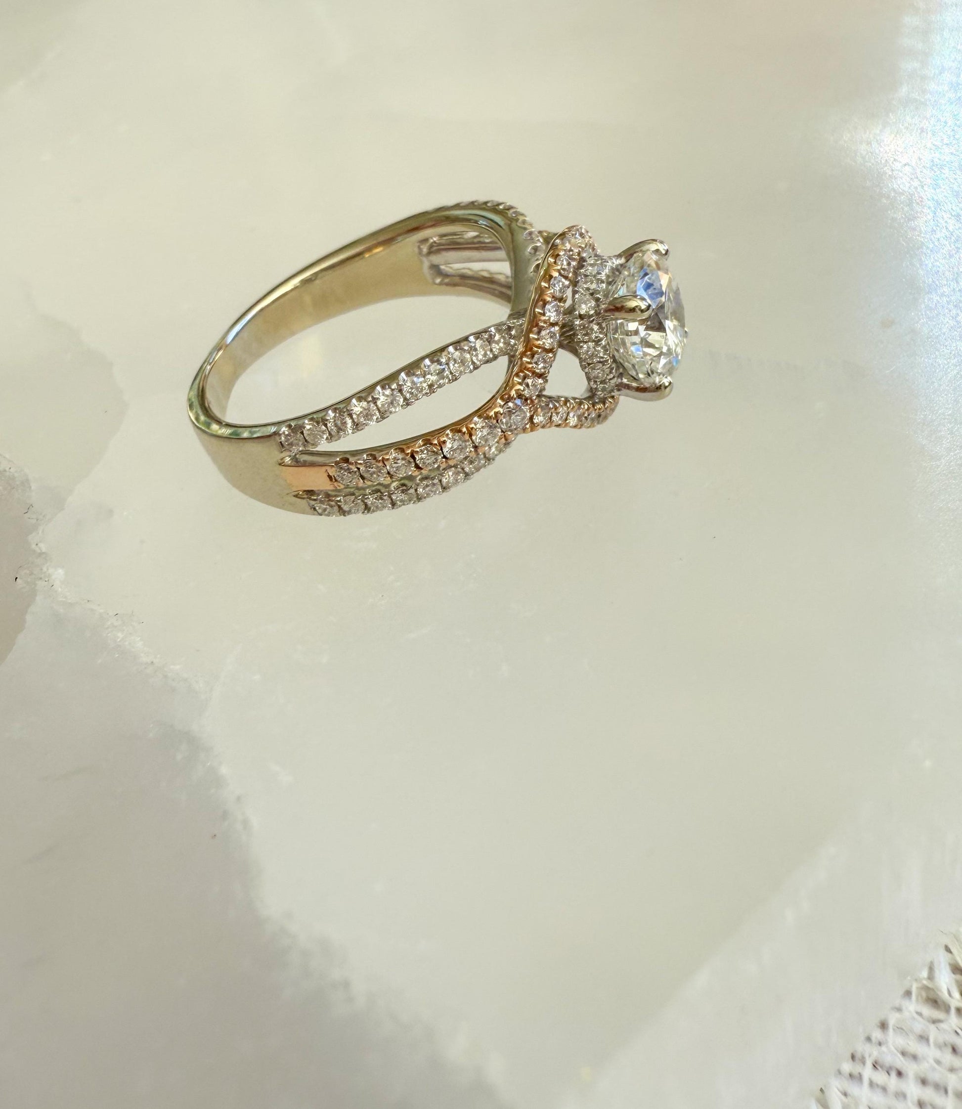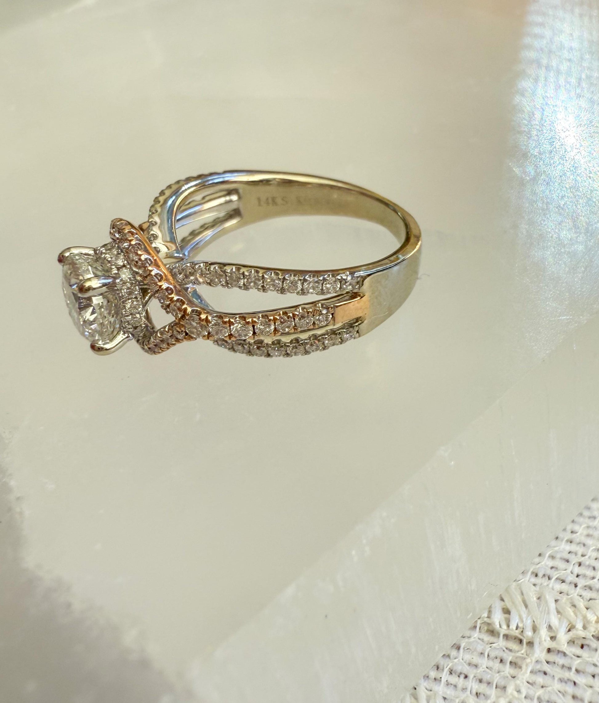 Natural Diamond Engagement Ring | .75ct Center | 14K Rose & White Gold Halo with 102 Accent Diamonds | Vintage-Inspired Sparkle