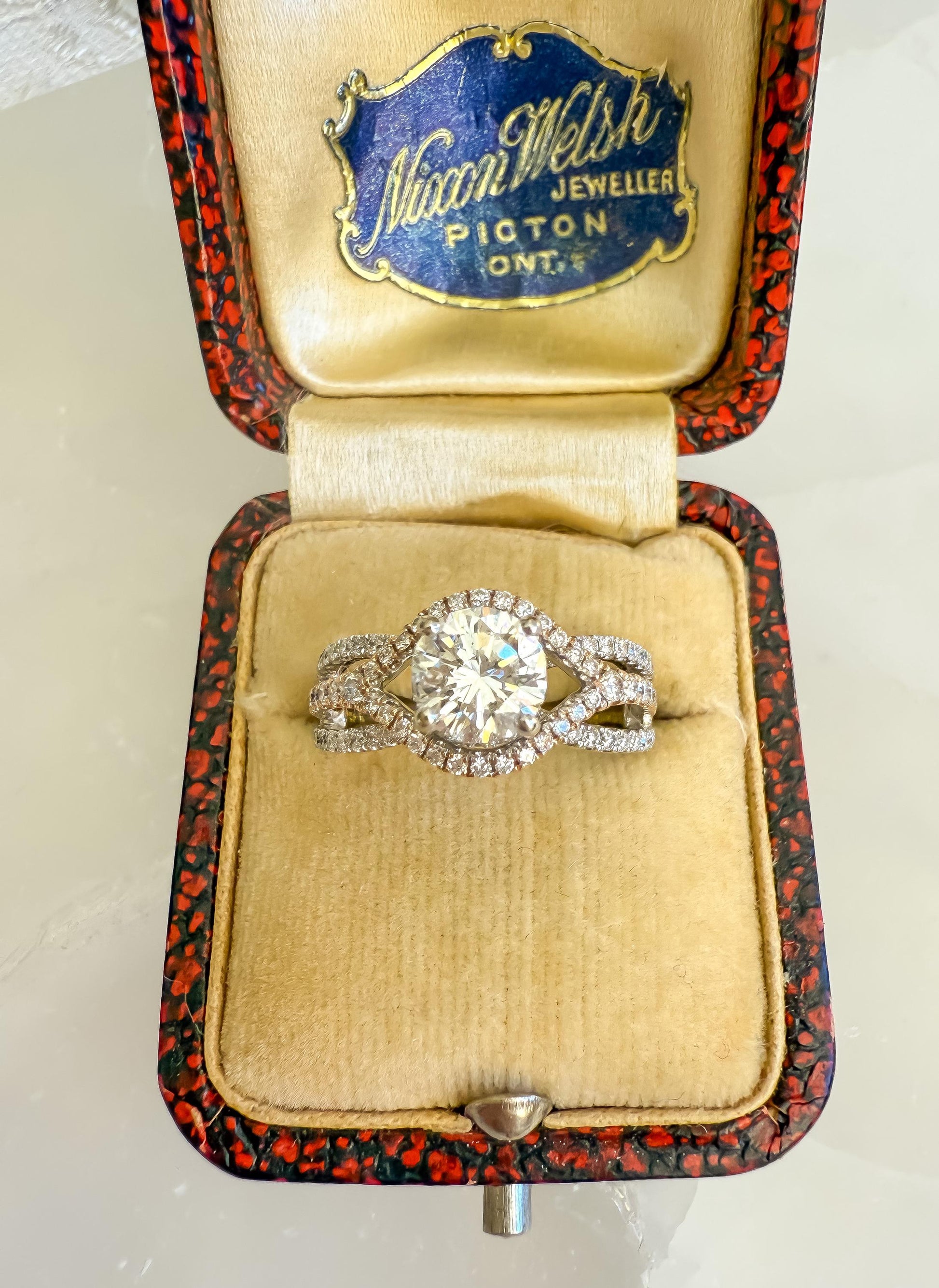 The double halo and twisted shank design give this ring an elegant, vintage-inspired silhouette with modern brilliance. Whether you’re celebrating an engagement, an anniversary, or simply your love of sparkle, this ring is designed to turn heads and capture hearts!