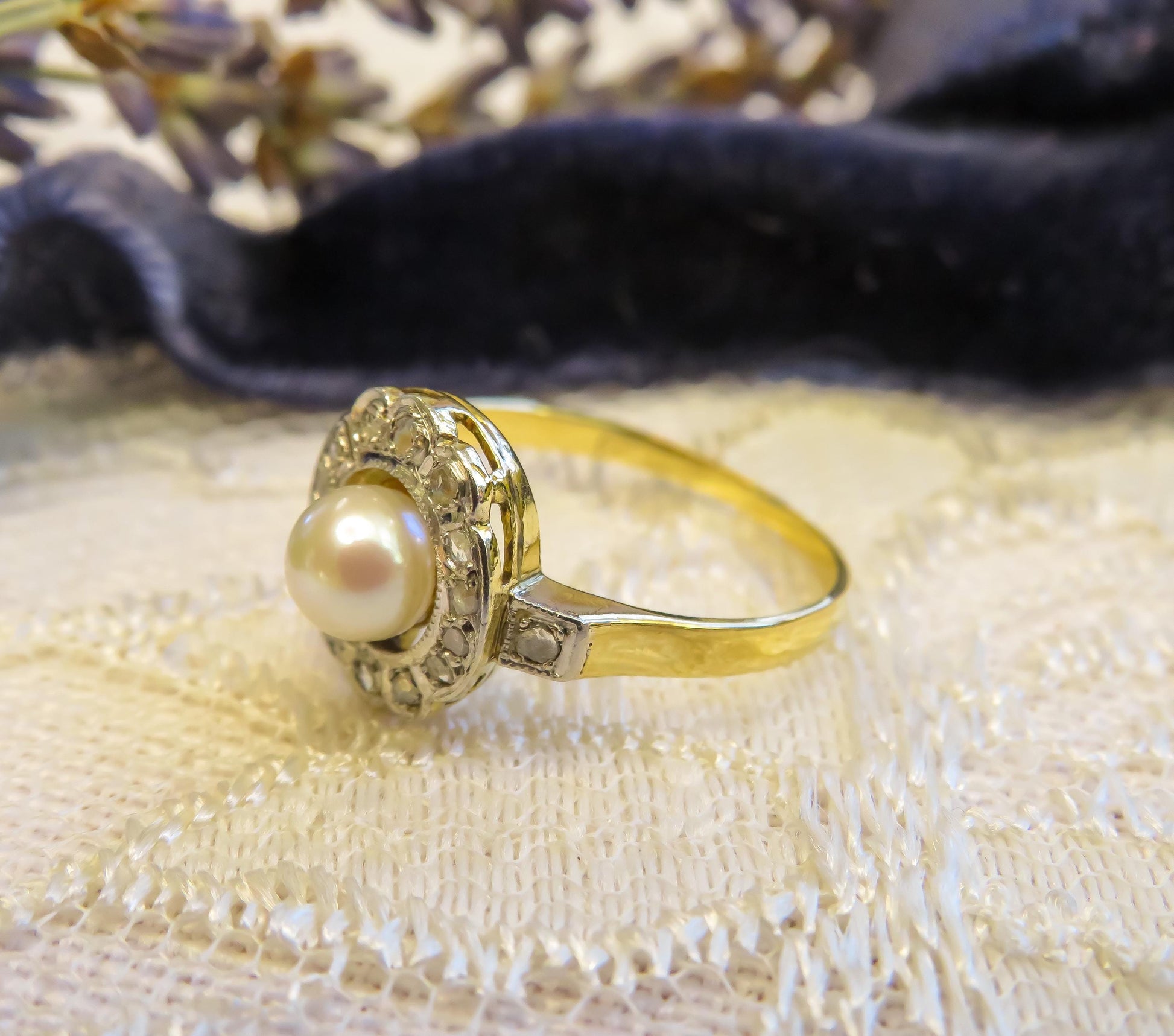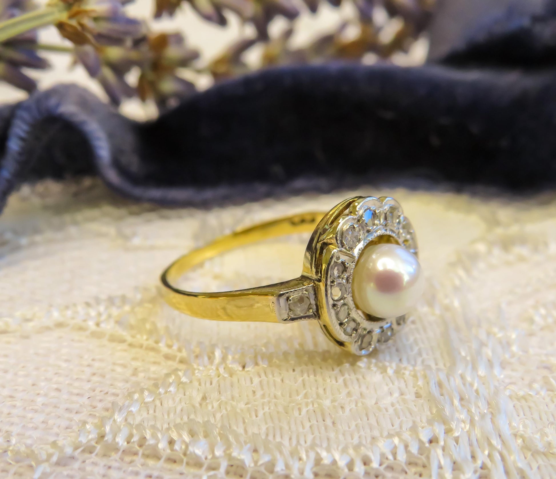 Pearl and Rose Cut Diamond Halo Ring from the Edwardian Era