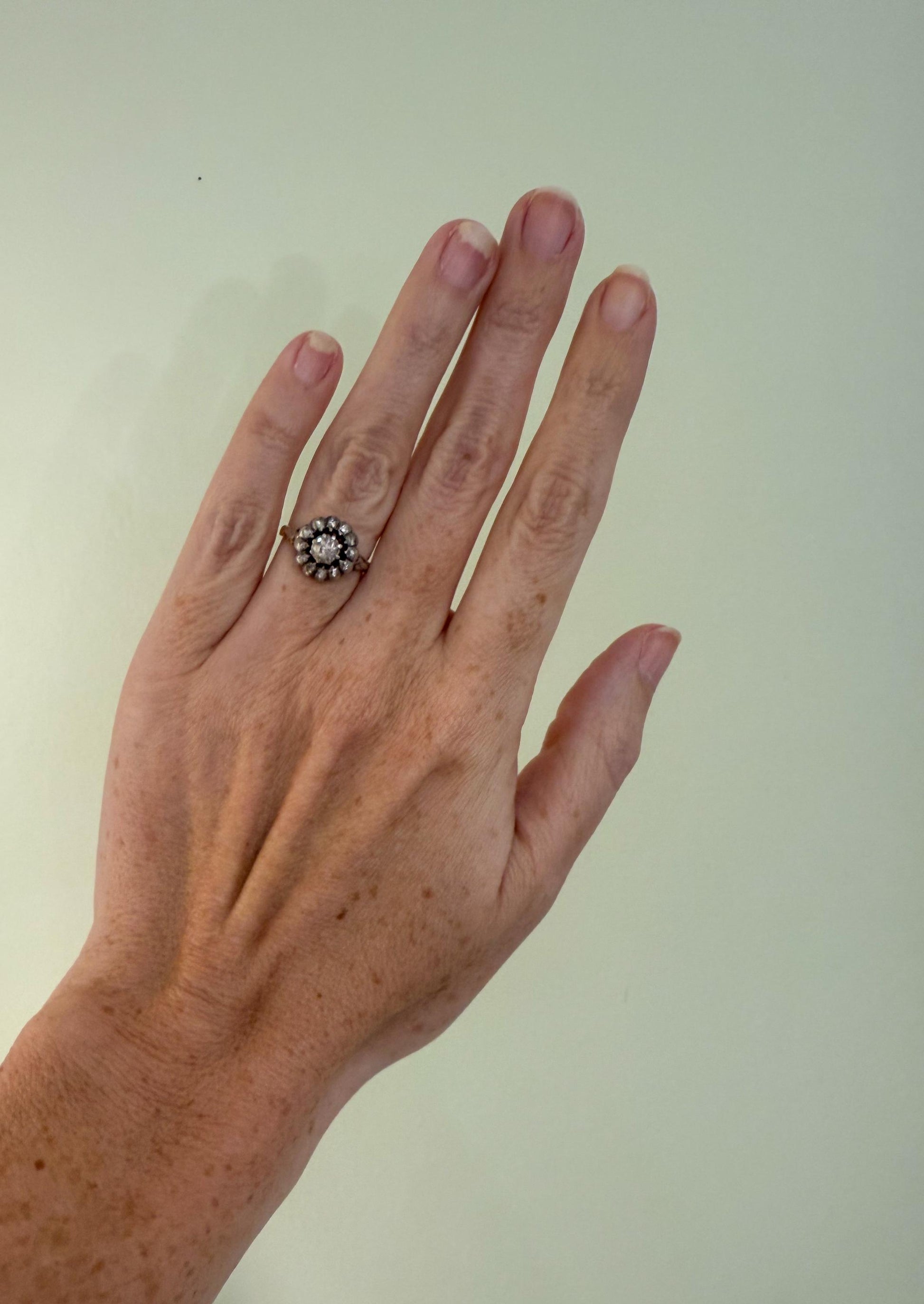 Antique Rose Cut Diamond Daisy Ring | Silver-Topped 15K Gold | Georgian Era Foil-Backed Diamonds | Size 5