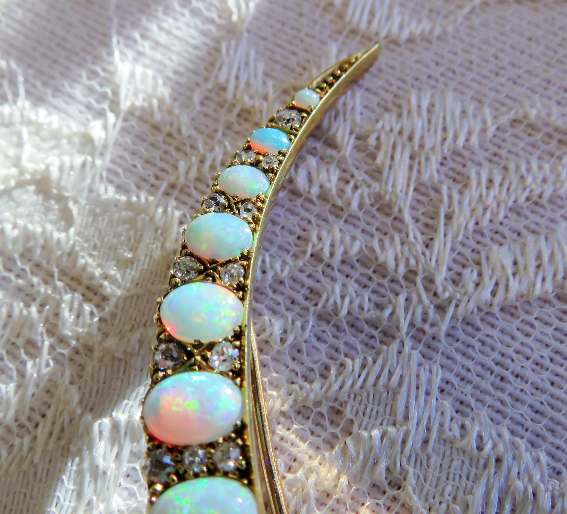 Victorian Era Opal and Diamond Crescent Brooch