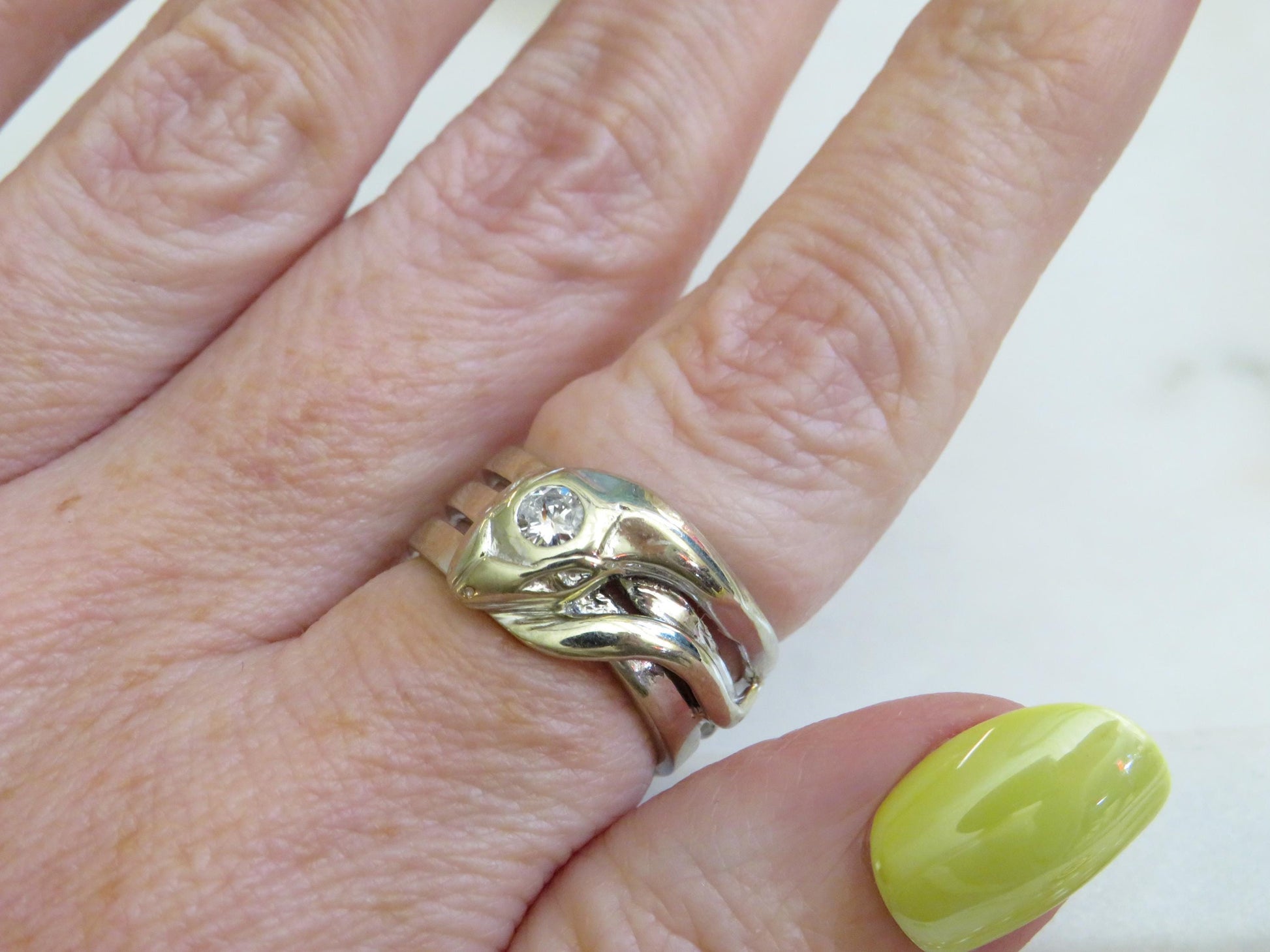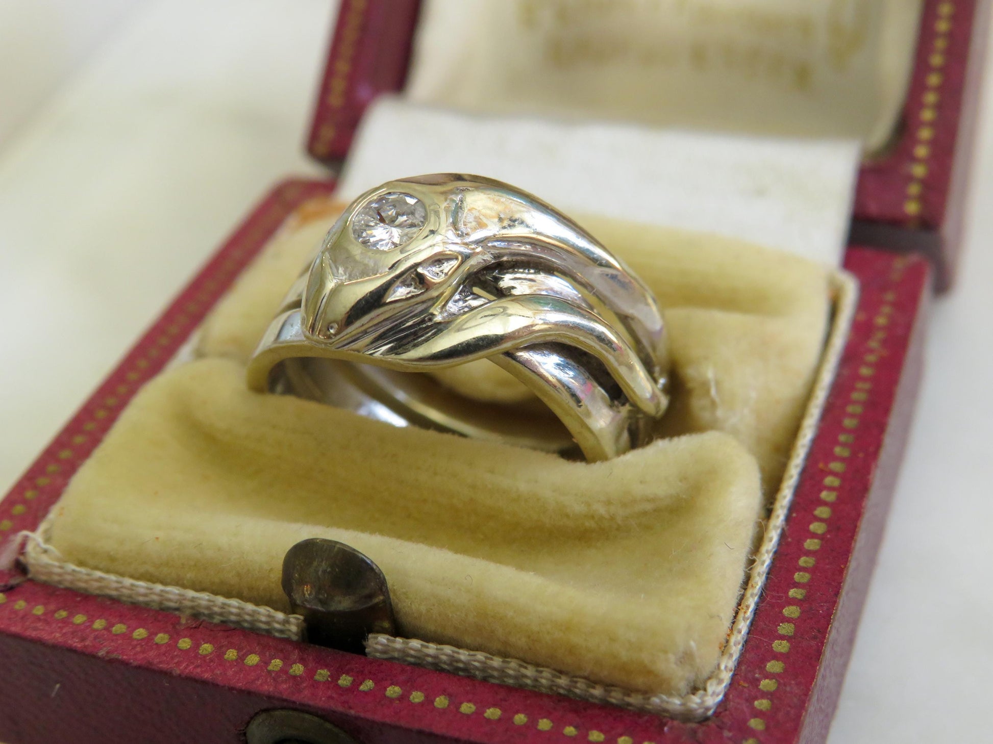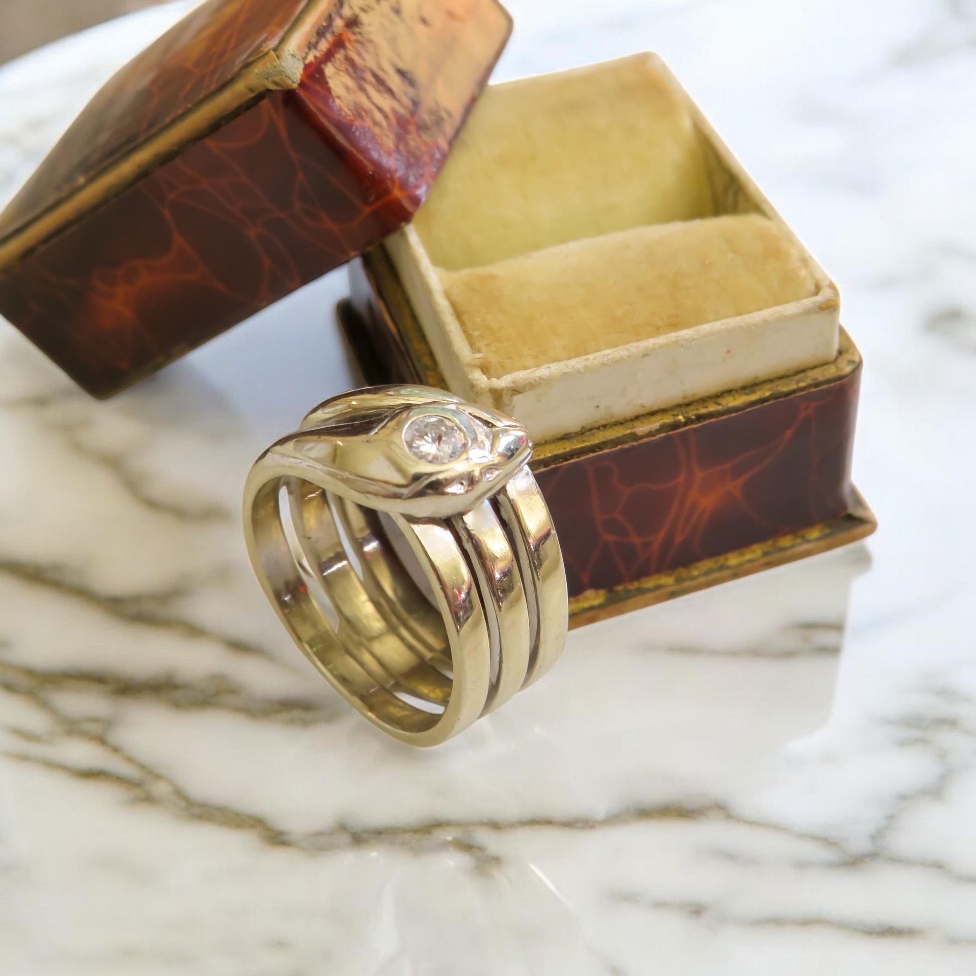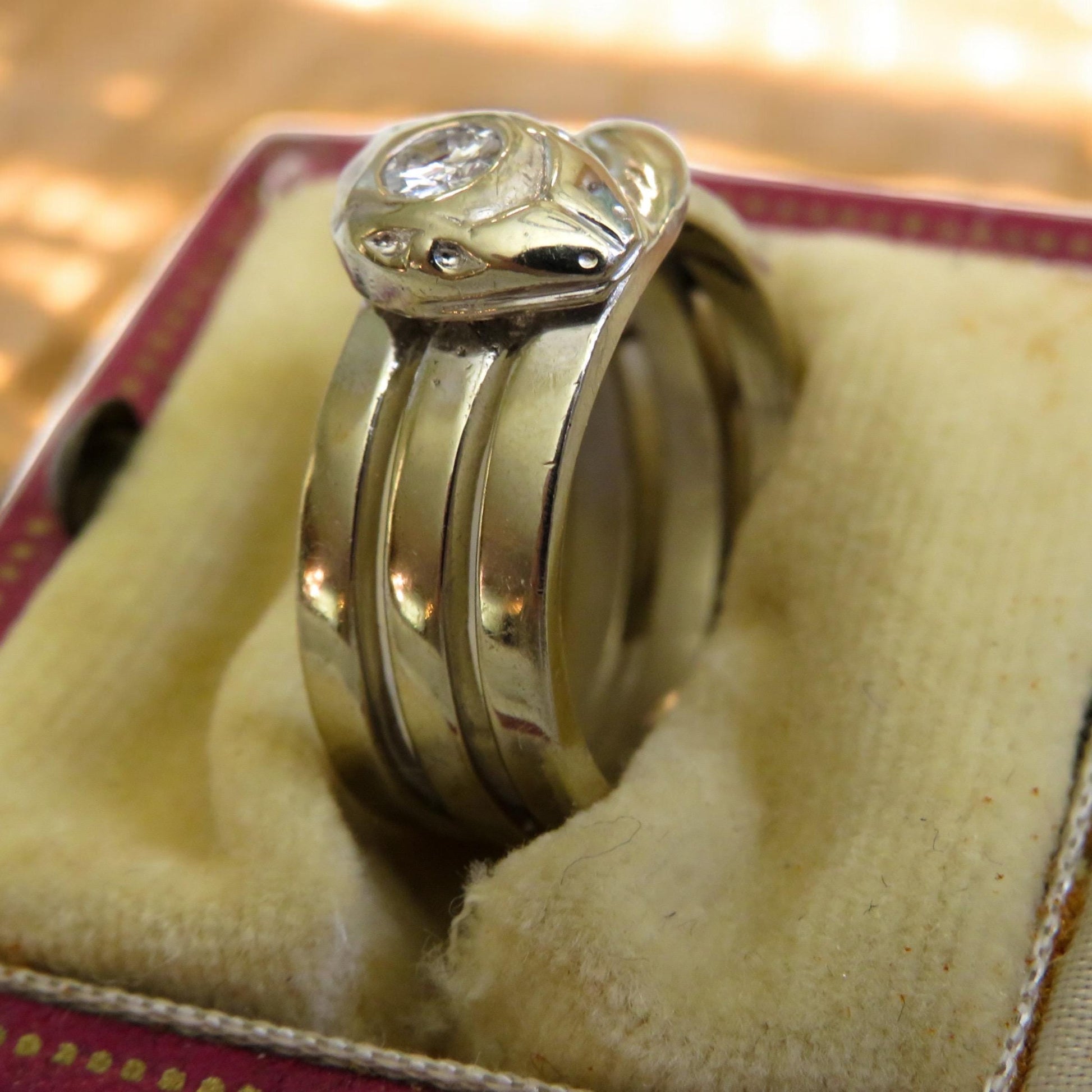 Whether worn as a meaningful talisman, a unique engagement ring, or a statement piece with vintage flair, this serpent ring is a true heirloom from the golden age of design.