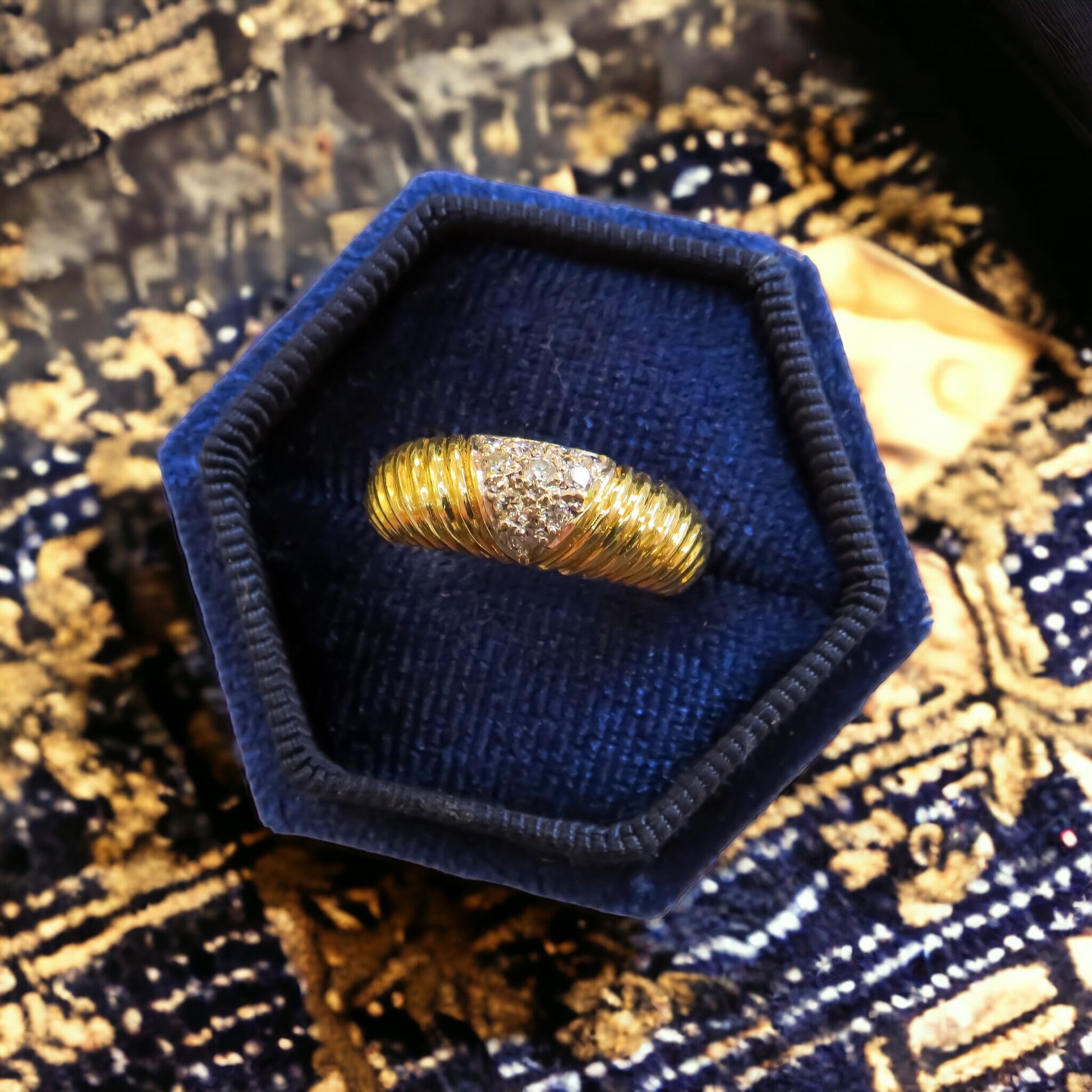 This vintage diamond cluster band exudes timeless elegance, set in luxurious 18K yellow gold.