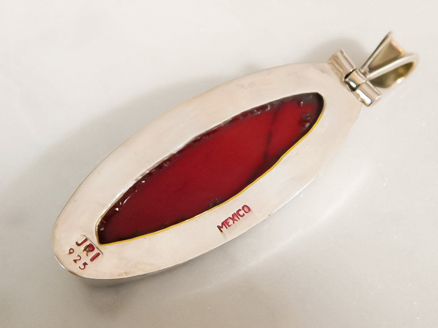 This is the statement piece you've been waiting for. The most fiery, saturated red contrasts beautifully with the cool silver on this pendant's bezel.